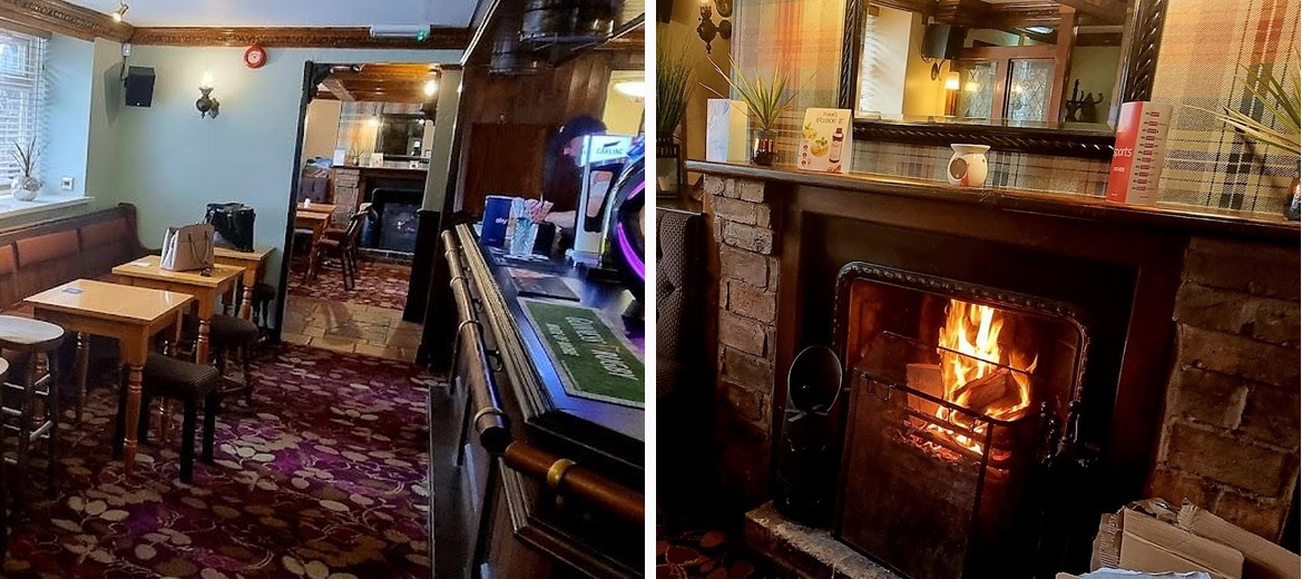 The warm and cozy decor, paired with an open fire, creates an inviting atmosphere that's perfect for both solo visits and group gatherings.